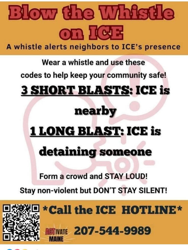 - Report ICE to the Hotline — If you see ICE, call the ICE Hotline: 207-544-9989. Save this number in your phone!