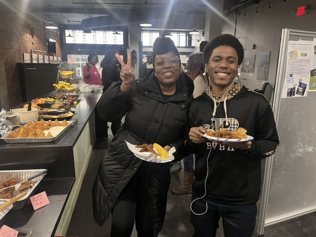 Bayside neighbors and immigrants from all over the world made short work of the over 200 samosas donated by Whole Foods and Trader Joe’s, along with other halal treats from Portland’s immigrant groceries and restaurants. Music and conversation were the order of the day, along with presentations by representatives from immigrant-serving organizations. Grace Mo-Phillips from Coastal Enterprises, Micky Bondo from In Her Presence, Bright Musuamba and Amen Mibaraka from Prosperity Maine, and Belinda Vemba from the Immigrant Welcome Center, all spoke about how their organizations help the community. City Councillor and Bayside resident Sarah Michniewicz was on hand not only to meet and listen to new neighbors, but also to help serve up samosas to the crowd.