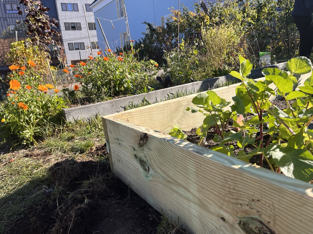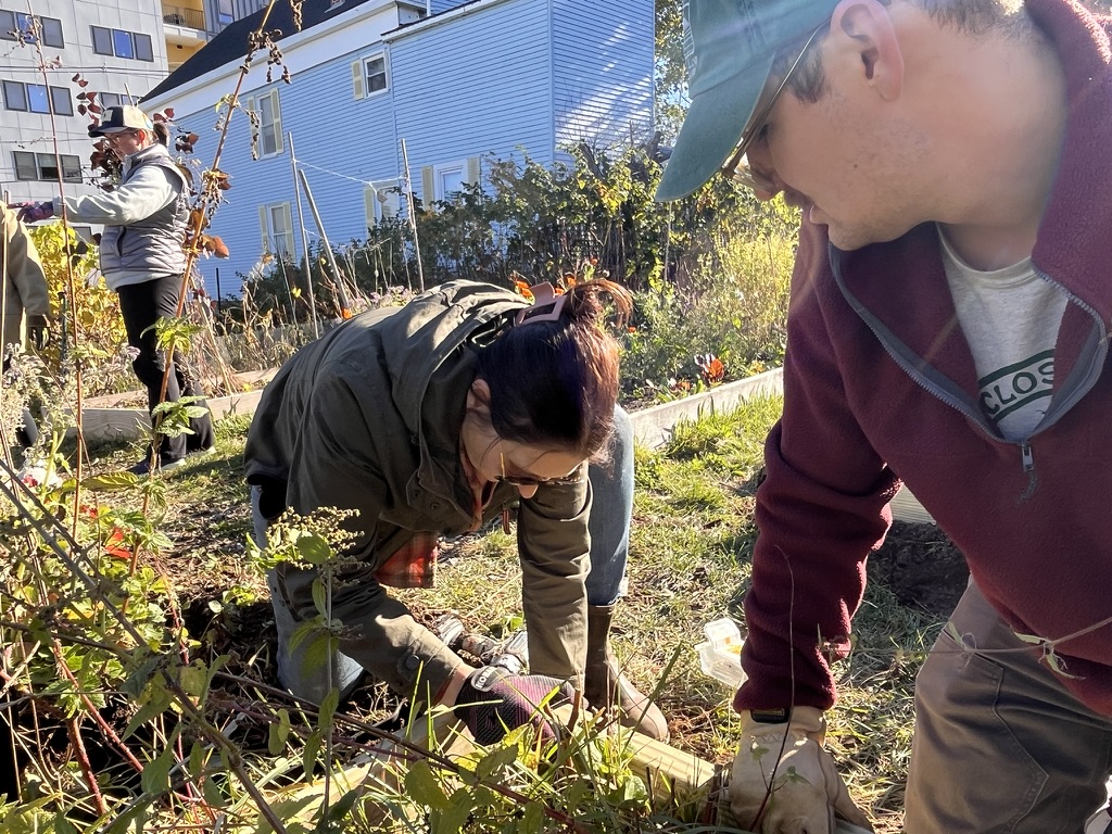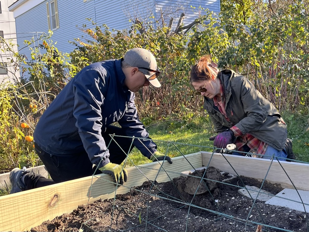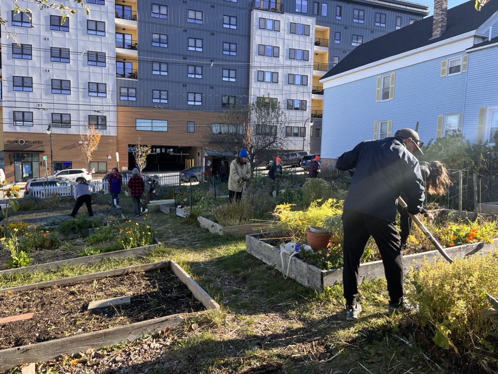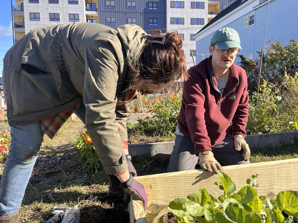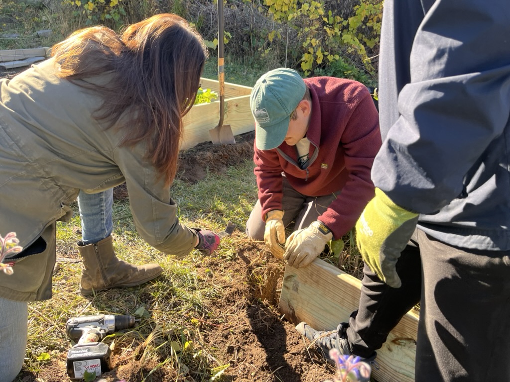 This fall, the Bayside Community Garden welcomed a group of Baxter Academy students for a hands-on volunteer workday focused on replacing aging garden bed sideboards. Working alongside garden volunteers and members of the Bayside Neighborhood Association, the students helped improve the garden’s infrastructure while learning about community care, collaboration, and stewardship of shared green spaces.